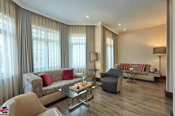 اگر به دنبال فضایی وسیعتر و امکانات رفاهی بیشتر هستید، اتاق دولوکس هتل کوناک تکسیم استانبول انتخابی ایدهآل برای شما خواهد بود. این اتاقها با طراحی شیک و مبلمان راحت، محیطی لوکس و دلنشین را ایجاد کردهاند. علاوه بر امکانات اتاق استاندارد، در اتاق دولوکس هتل کوناک تکسیم استانبول میتوانید از یک قسمت نشیمن جداگانه با مبلمان شیک بهرهمند شوید که فضایی مناسب برای استراحت یا پذیرایی از مهمانان فراهم میکند. برخی از این اتاقها دارای بالکن اختصاصی با چشماندازی زیبا از شهر یا محوطه هتل هستند که لذت اقامتتان را دوچندان میکند. امکانات اضافی مانند چایساز و قهوهساز نیز در این اتاقها موجود است تا بتوانید در هر لحظه از نوشیدنی گرم خود لذت ببرید. اقامت در اتاق دولوکس هتل کوناک تکسیم استانبول، تجربهای بینظیر از آسایش و رفاه را برای شما رقم خواهد زد.